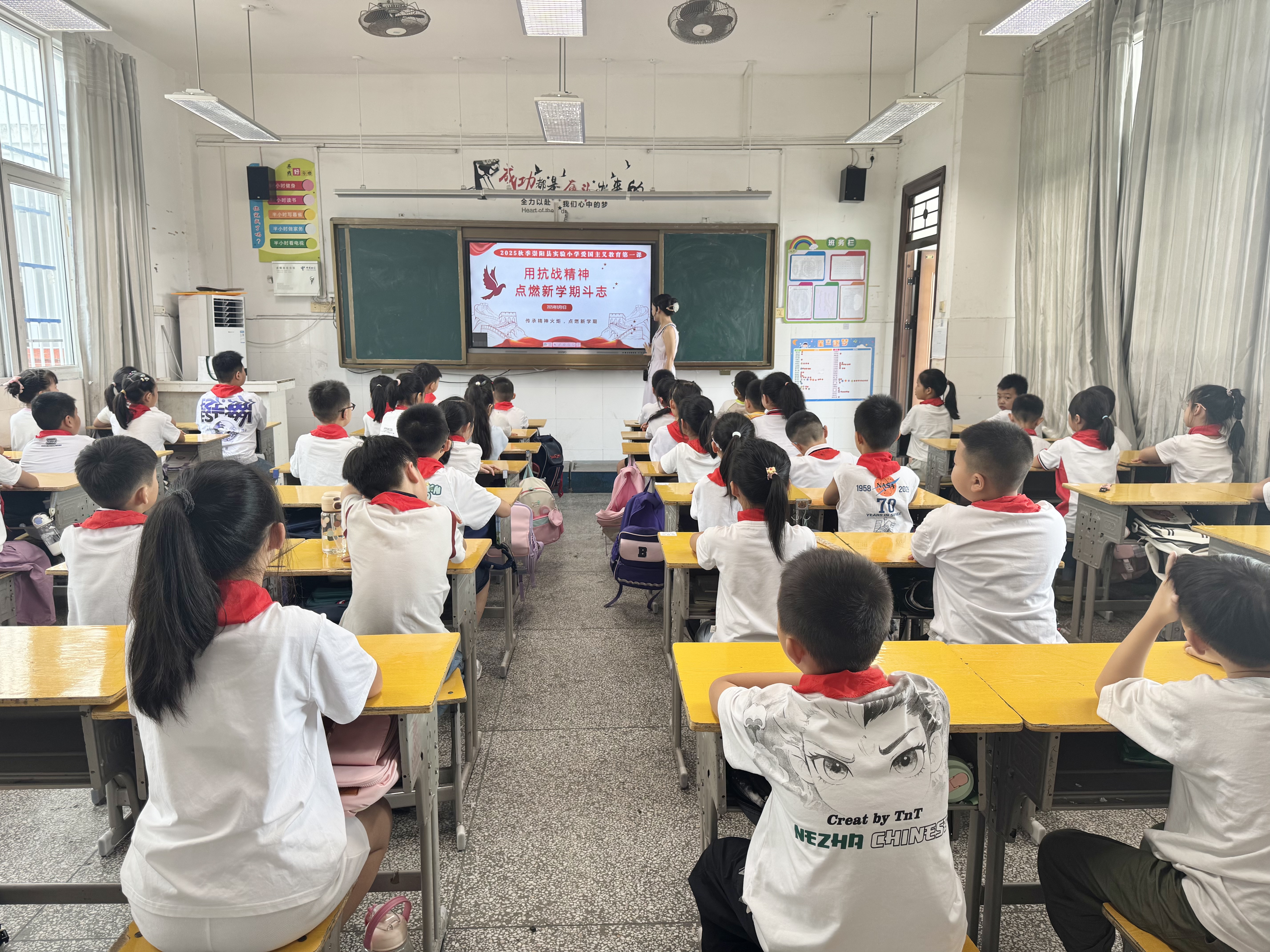 崇阳县实验小学的“开学第一课”,让“新校园”与“爱国情”撞了个满怀。新学期的校园换上了“新装”——干净的操场、明亮的教室,处处透着新鲜感;而课堂上播放的爱国主义教育课件,更让这份新鲜多了温度。孩子们看着课件里的革命先烈故事、祖国发展成就,时而认真点头,时而小声讨论,爱国的种子在潜移默化中悄然发芽。